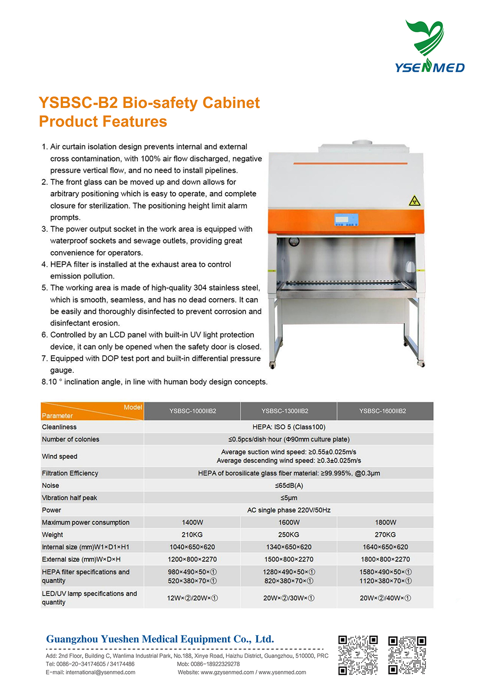 YSBSC-1300IIB2 Class II B2 Biosafety Cabinet: 100% air exhaust, HEPA filtered & 304 SS work area. Safe, reliable medical lab solution.