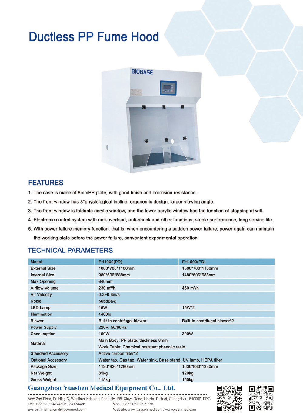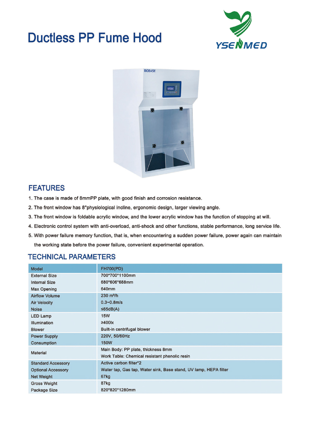 Introduction: The Ductless PP(Polypropylene) Fume Hood is a specialized laboratory safety device designed to protect users from harmful fumes, vapors, and dust during chemical handling and experimentation. Unlike traditional ducted fume hoods, the ductless version uses advanced filtration technology to purify the air before releasing it back into the laboratory, eliminating the need for external ducting.