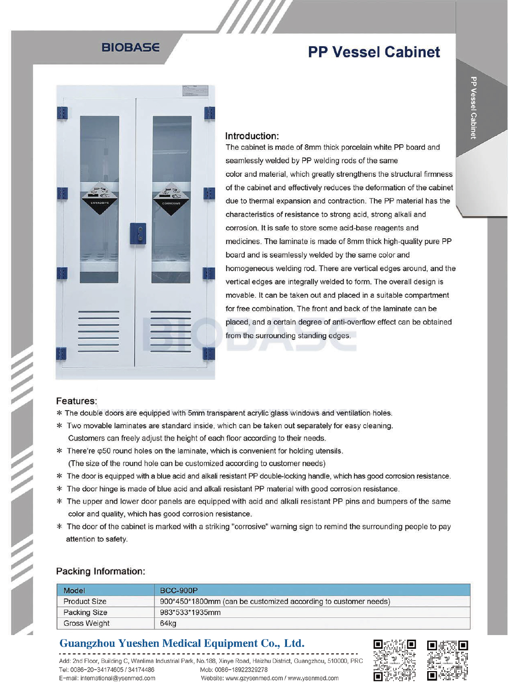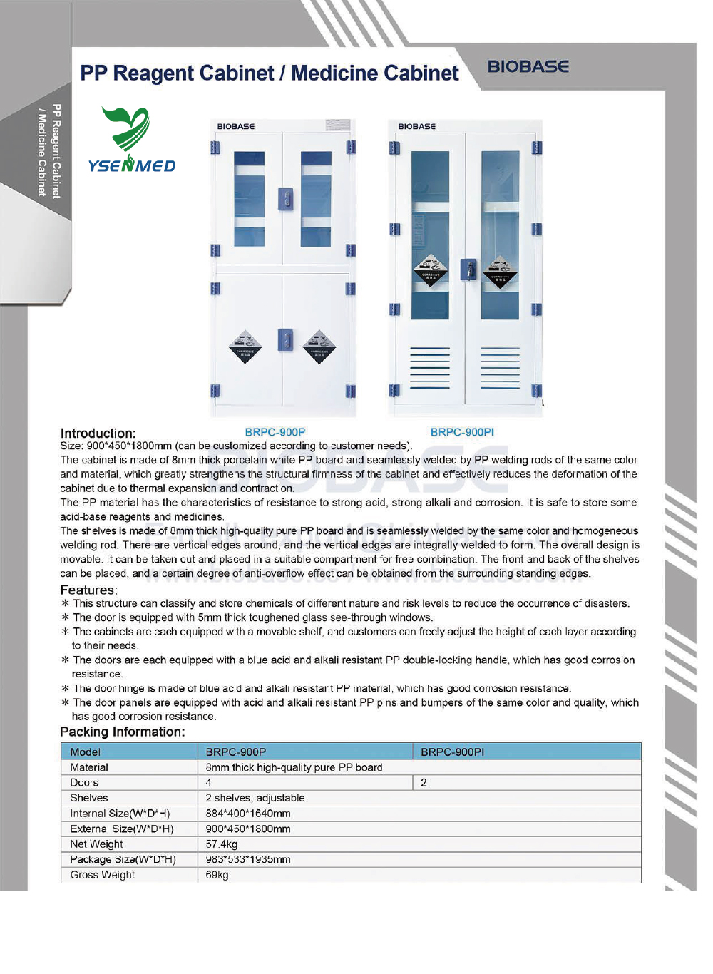 BRPC-900P PP Reagent Cabinet: Seamlessly welded for strong acid & alkali resistance. Safe chemical storage for hospitals.