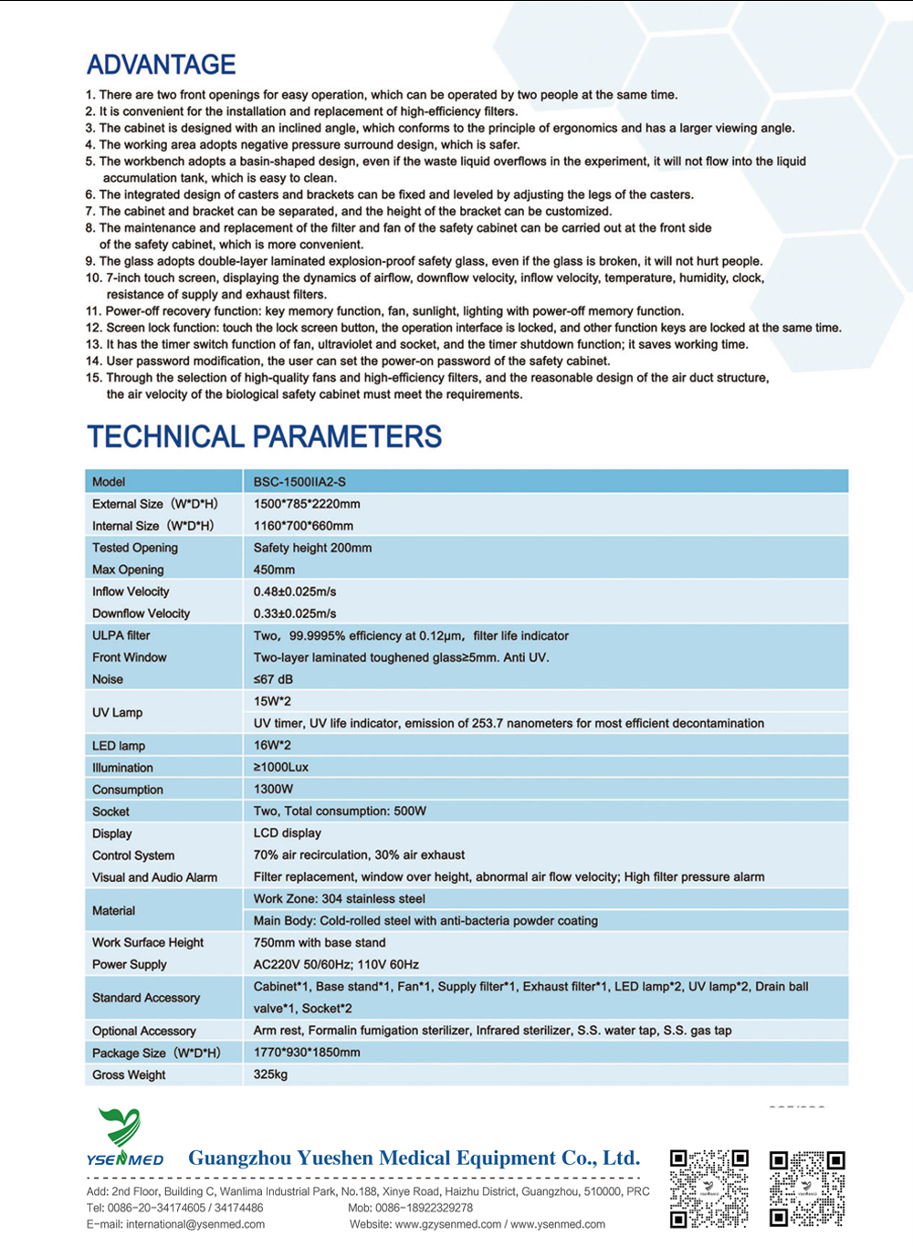 Cabinet*1, Base stand*1, Fan*1, Supply filter*1, Exhaust filter*1, LED lamp*2, UV lamp*2, Drain ball valve*1, Socket*2