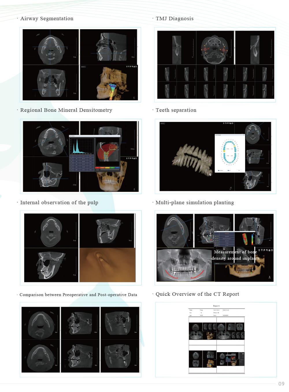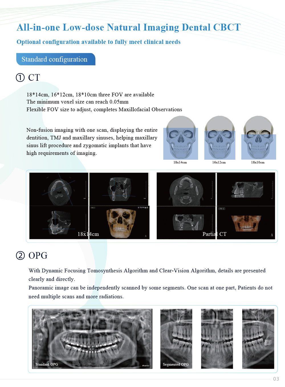 Flexible FOV size to adjust, completes Maxillofacial ObservationsNon-fusion imaging with one scan, displaying the entire dentition, TMJ and maxillary sinuses, helping maxillary sinus lift procedure and zygomatic implants that have high requirements of imaging.