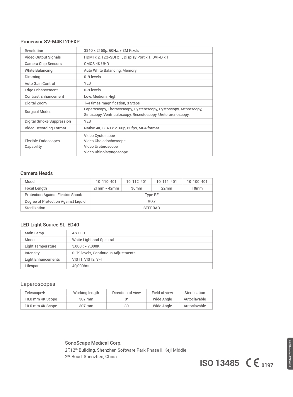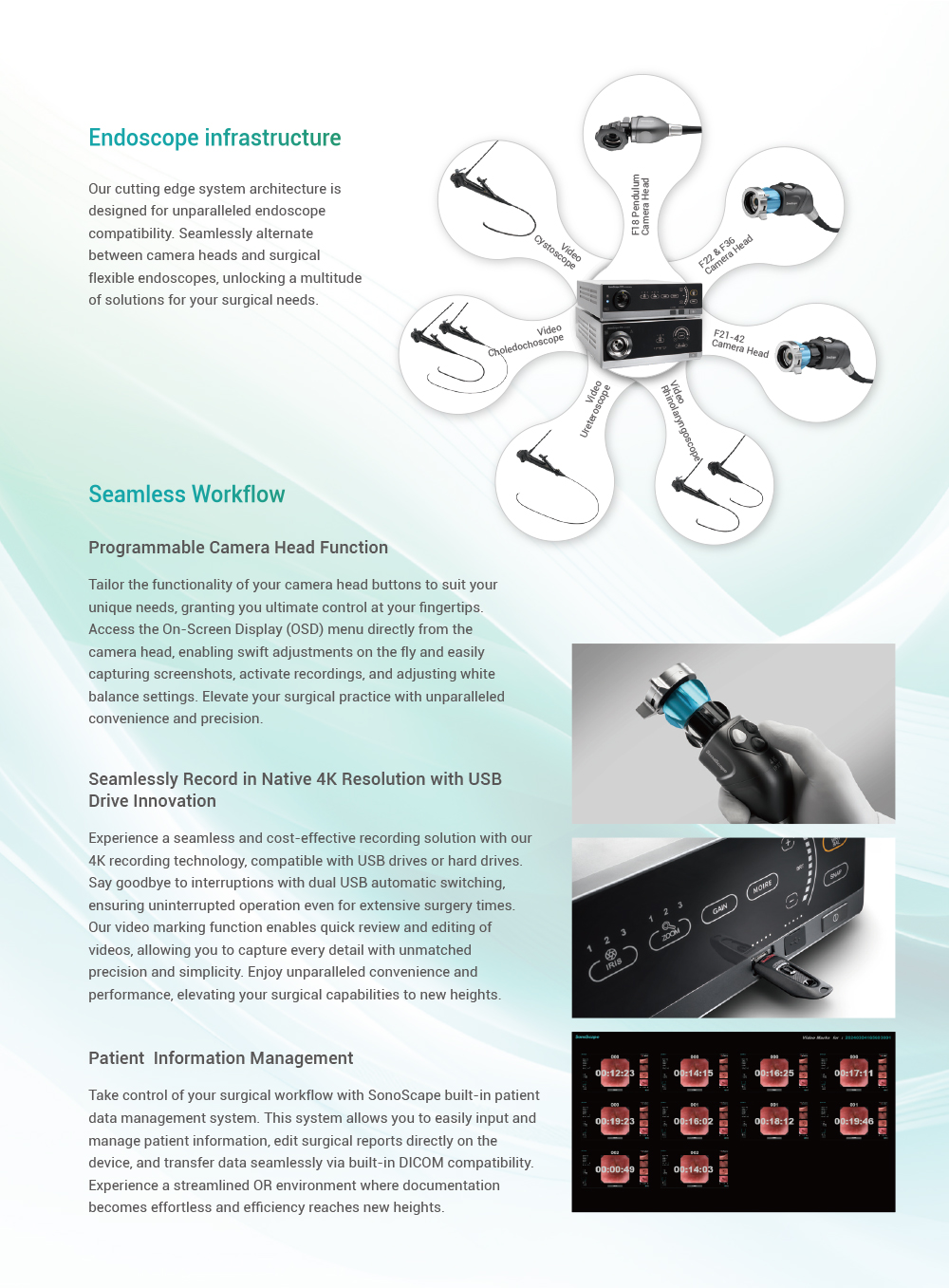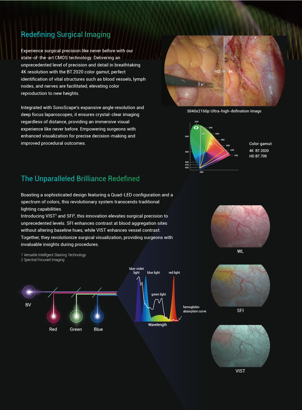 Elevate surgery with SonoScape SV-M4K120 4K UHD endoscopy system. Features BT.2020 color, VIST/SFI imaging, and seamless workflow.