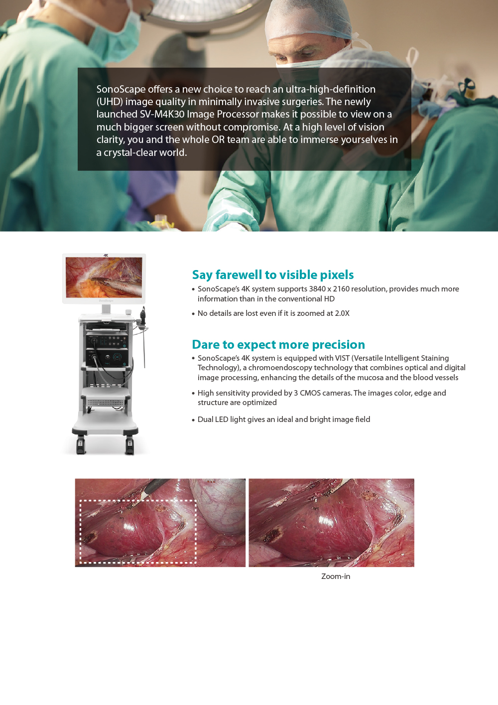 High-definition SonoScape SV-M4K30 4K system for MIS. Features 3CMOS sensor & dual LED for superior clarity.