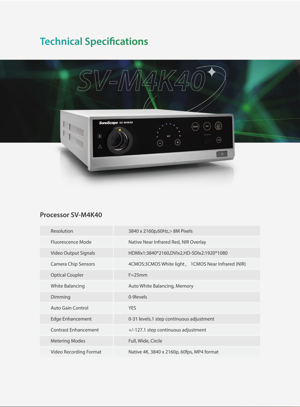 SonoScape SV-M4K40 UHD 4K Fluorescence Endoscopy Camera System