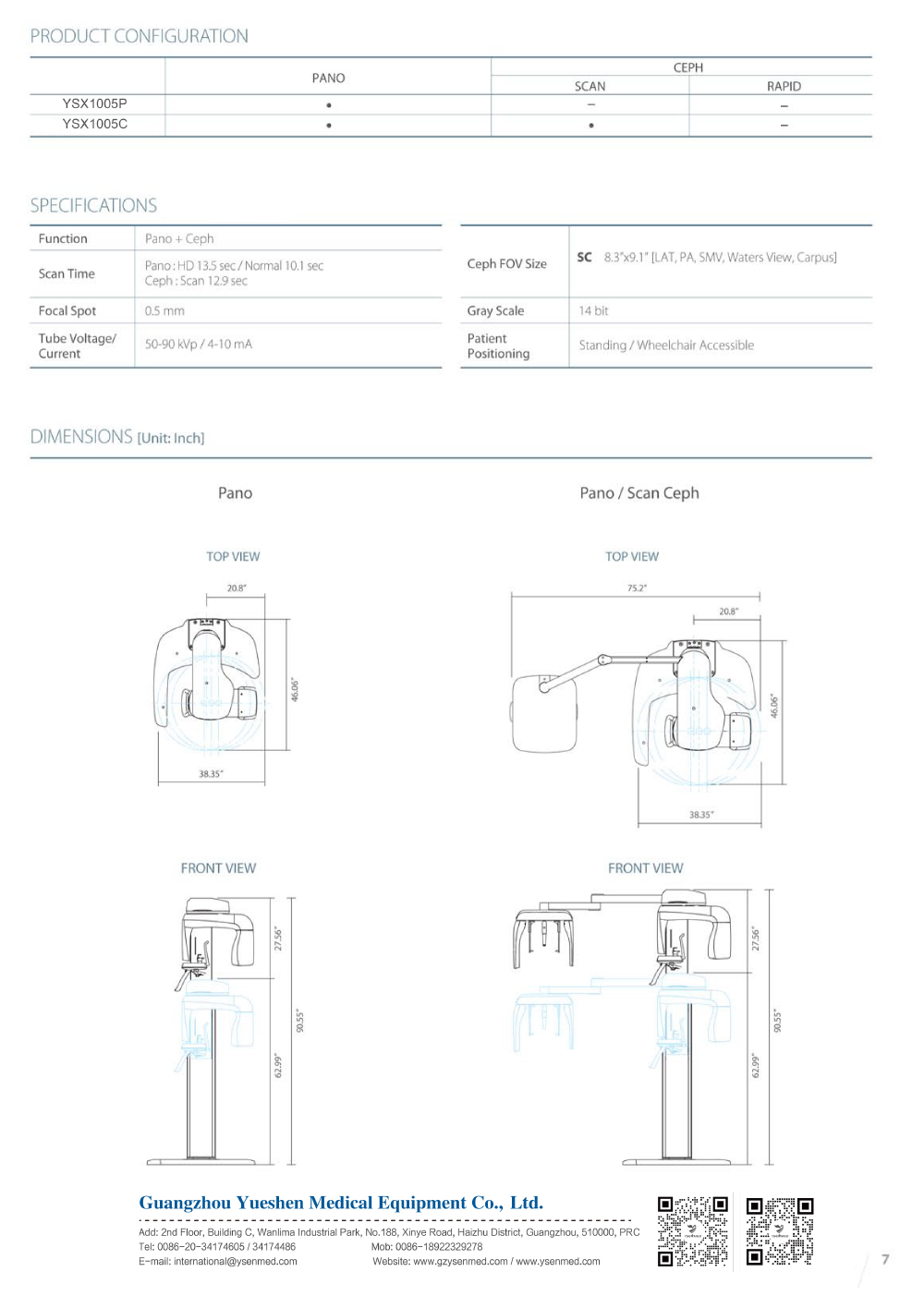 YSENMED Medical Dental Digital Panoramic X-ray System with Cephalometry YSX1005C
