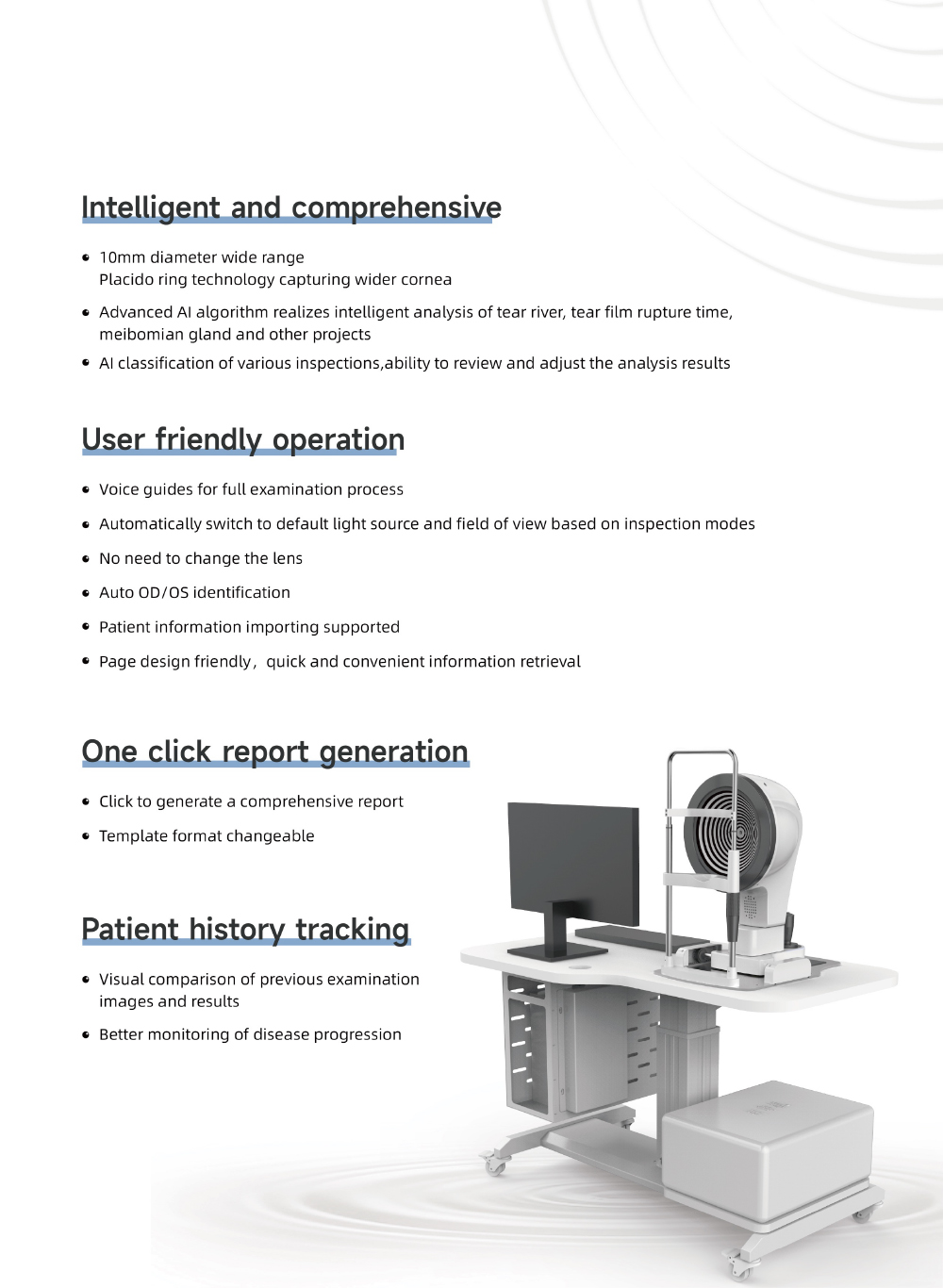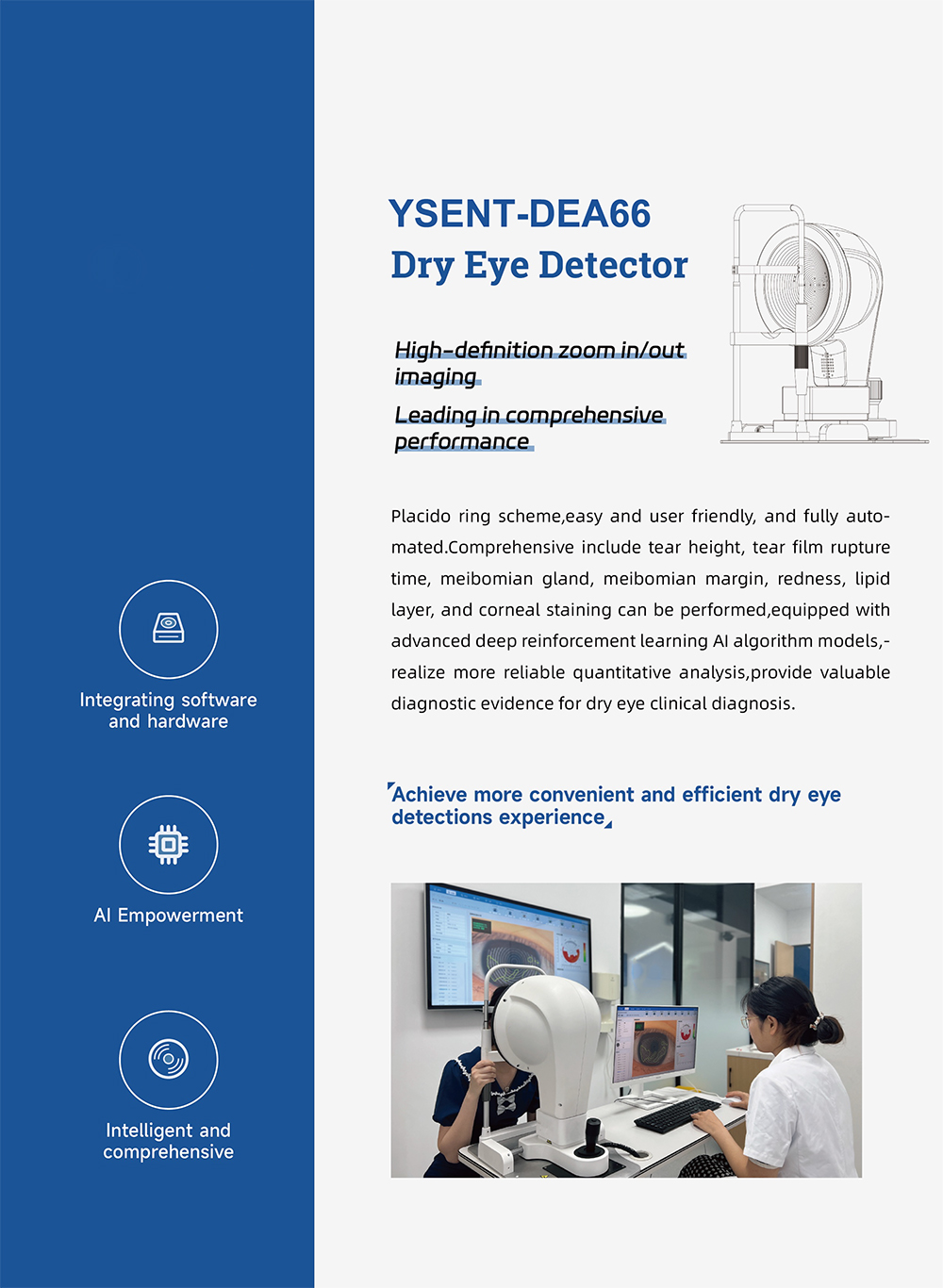 YSENT-DEA66 AI Dry Eye Detector delivers comprehensive DED screening with wide-range Placido imaging, smart analysis, and one-click reports.