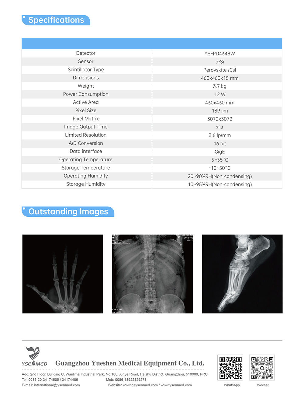 YSENMED Medical Wired Flat Panel Detector YSFPD4343R