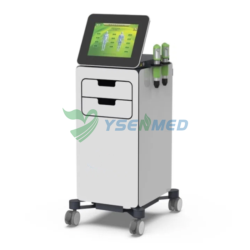 Extracorporeal shock wave therapy apparatus is produced by the compressor air pulse sound waves into precise ballistic burst that through physics conduction medium (such as air, liquid, etc.) acting on the body,produce biological effect, is the sudden release of energy caused by high pressure wave, with a higher pressure instantly and the characteristics of high speed transmission. Through the therapeutic probe .Positioning and moving can loosen the adhesions and dredge the tissues in a wide range of pain tissues.