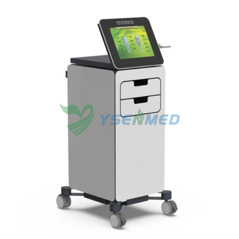 Advantages 1. New luxury appearance design, fashion and generous; Proll-type design, easy to move. 2. Dual storage lockers: can store the therapeutic conductors and other sundries separately; Imported compressor, silent work,treatment of environmental safety,Quiet and comfortable; HD touch screen, easy to operate. 3. Built-in 200 treatment prescriptions, additional treatment prescriptions can be added; Equipped with exquisite prescription manual and portable prescription desk calendar, you can choose treatment prescription according to the patient's disease position; With voice broadcast function; With automatic pistol identification and detection function.