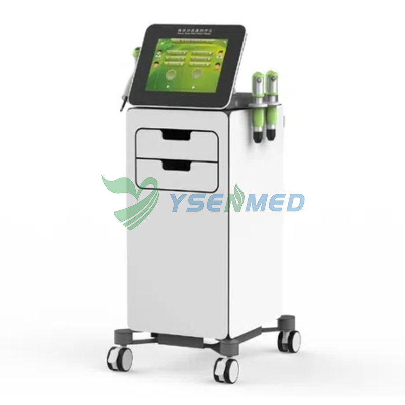 Advantages 1. New luxury appearance design, fashion and generous; Proll-type design, easy to move. 2. Dual storage lockers: can store the therapeutic conductors and other sundries separately; Imported compressor, silent work,treatment of environmental safety,Quiet and comfortable; HD touch screen, easy to operate. 3. Built-in 200 treatment prescriptions, additional treatment prescriptions can be added; Equipped with exquisite prescription manual and portable prescription desk calendar, you can choose treatment prescription according to the patient's disease position; With voice broadcast function; With automatic pistol identification and detection function. Scope of application It is suitable for the adjuvant treatment of pain.