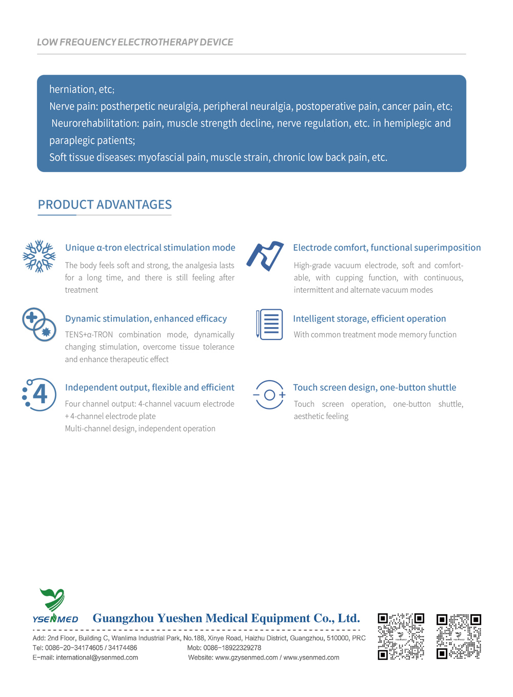The Low Frequency Electrotherapy Device adopts touch control mode, combined with electric stimulation theory, and is a therapeutic device for relieving pain developed by applying alternating current therapy technology.
