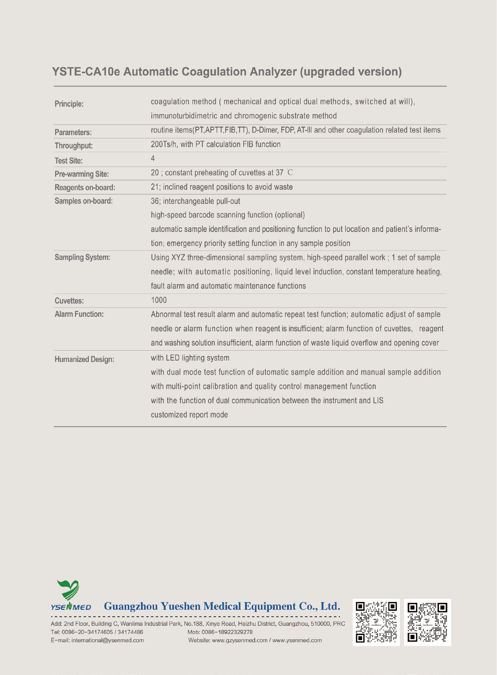YSTE-CA10e Automatic Blood Coagulation Analyzer
