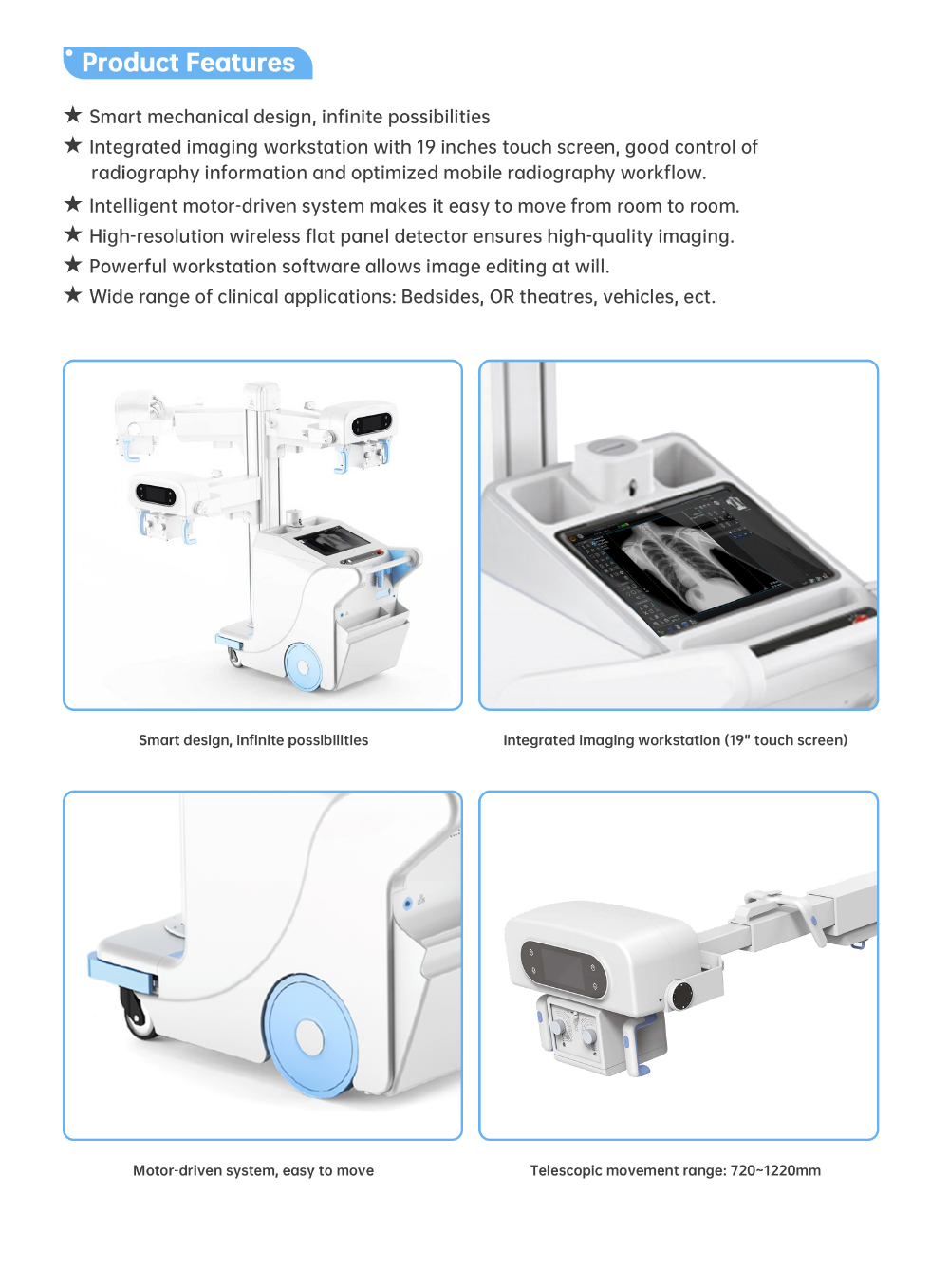 The Telescopic Movement Range of X-ray Tube Center along the Column Side: 720~1220mm