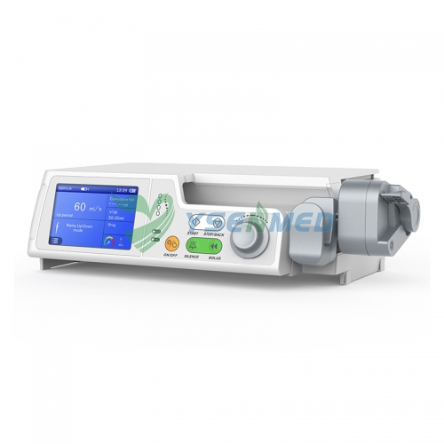 Future-ready hospital infusion: quick-install handle, 3.5″ touch/keypad, universal syringe support, on-the-fly rate adjust, smart alarms & service alerts.